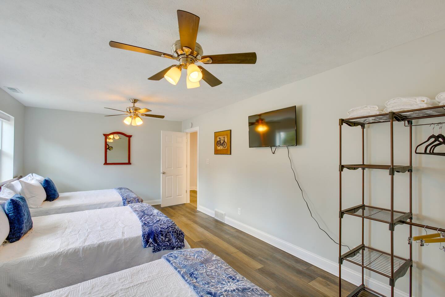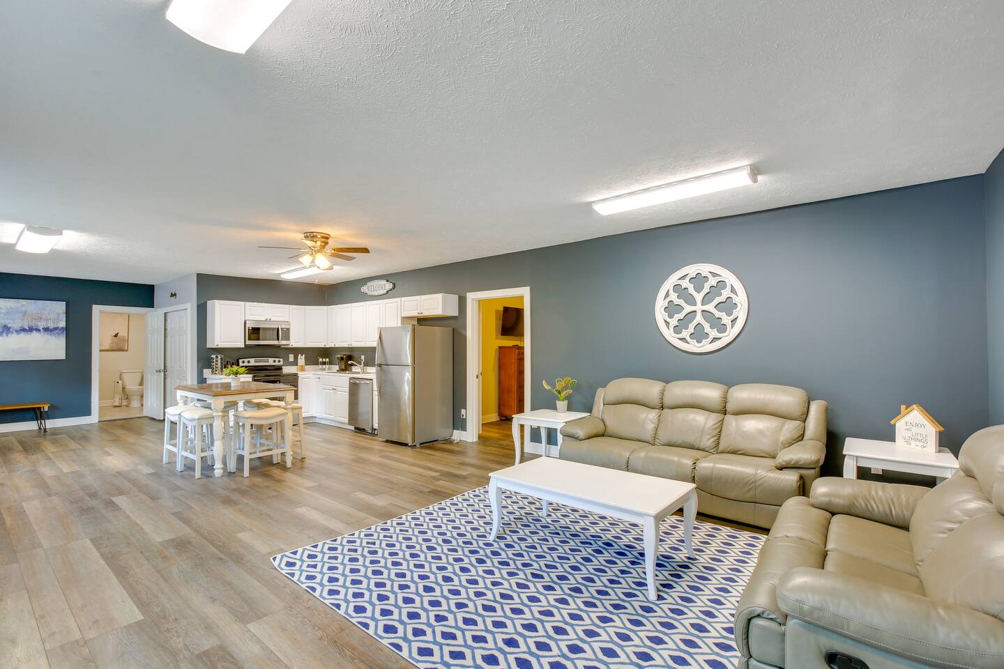 Private Fire Pit | Theater Room w/ 85” TV & Surround Sound | 2 Arcade Machines | Shared Basketball Court & Sand Volleyball Area | Minutes to Hiking Trails Bedroom 1: King Bed | Bedroom 2: Queen Bed | Bedroom 3: Full Bed | Bedroom 4: 3 Full Beds HOME HIGHLIGHTS: 5 flat-screen TVs, fireplace, dining table, gas grill, Playstation 5 KITCHEN: Dishwasher, stove/oven, refrigerator, microwave, cooking basics, dishware & flatware, Keurig, spices, trash bags & paper towels GENERAL: Free WiFi, central A/C & heating, complimentary toiletries, linens & towels, in-home laundry, hair dryer, hangers, iron & board, keyless entry FAQ: 7 external security cameras (facing out), multi-unit property ACCESSIBILITY: Step-free entry, single-story duplex unit Suite B PARKING: Driveway (4 vehicle), free street parking, RV/trailer parking allowed on-site ADDT’L ACCOMMODATIONS: An additional property is available on-site with a separate nightly rate. If you would like to reserve both rentals, please inquire for more information prior to booking House rules No smoking No pets allowed No events, parties, or large gatherings Must be at least 25 years old to book Additional fees and taxes may apply Photo ID may be required upon check-in NOTE: This single-story duplex unit features step-free entry NOTE: This private duplex unit is in a multi-unit property. There is another bookable vacation rental in the other duplex unit, they share the basketball and volleyball court; other travelers may be present during your stay NOTE: Your safety matters. This property features 7 exterior security cameras. Camera 1 is on the front entrance facing out, cameras 2 and 3 are on the front corners facing the front of the property, camera 4 is on the back facing the outdoor living area, cameras 5 and 6 are on the back corners facing the back of the property, and camera 7 is a doorbell camera on the front door facing the exterior front entry. The cameras are outward facing and do not look into interior spaces. The cameras record video and sound when activated by motion The location ADVENTURE: Kenwood Heritage Park (3 miles), Mitchell State Park (4 miles), Adventure Island (5 miles), Caberfae Peaks (18 miles), Crystal Mountain (33 miles) TEE TIME: Cadillac Country Club (6 miles), Evergreen Golf Resort (6 miles), Eldorado Golf Course (8 miles) ATTRACTIONS: Lake Mitchell (5 miles), Lake Cadillac (7 miles), Great Wolf Lodge Water Park | Traverse City (41 miles), Turtle Creek Casino & Hotel (41 miles) AIRPORT: Cherry Capital Airport (44 miles)